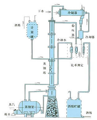 本装置适用于制药、食品、轻工、化工等行业的稀酒精回收。也适用于甲醇等其他溶媒的蒸馏。本装置根据用户的要求,可将30℃左右的稀酒精蒸馏至90℃-95℃酒精,成品酒精度要求越高,可加大回流比,但产量则相应降低。W型也可用于甲醇等蒸馏。W型为间歇式,ZW型为连。